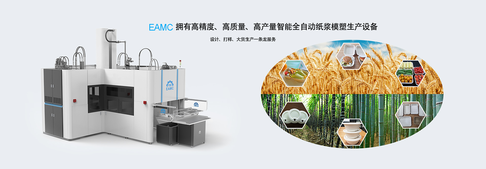 欧亚EAMC全自动植物纤维(纸浆)模塑生产线,可采用蔗渣浆、毛竹浆、芦苇浆、麦草浆、棕榈浆及木浆等植物纤维作为原料,生产各种高质量和...